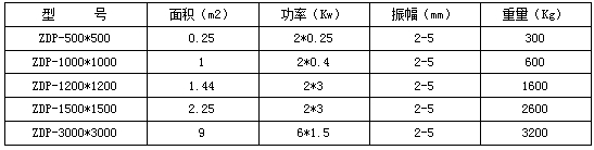 ZDP型振動平臺又叫振實臺,主要用于物料的震實,減少物料內的空氣和縫隙.一般和料倉配套使用;